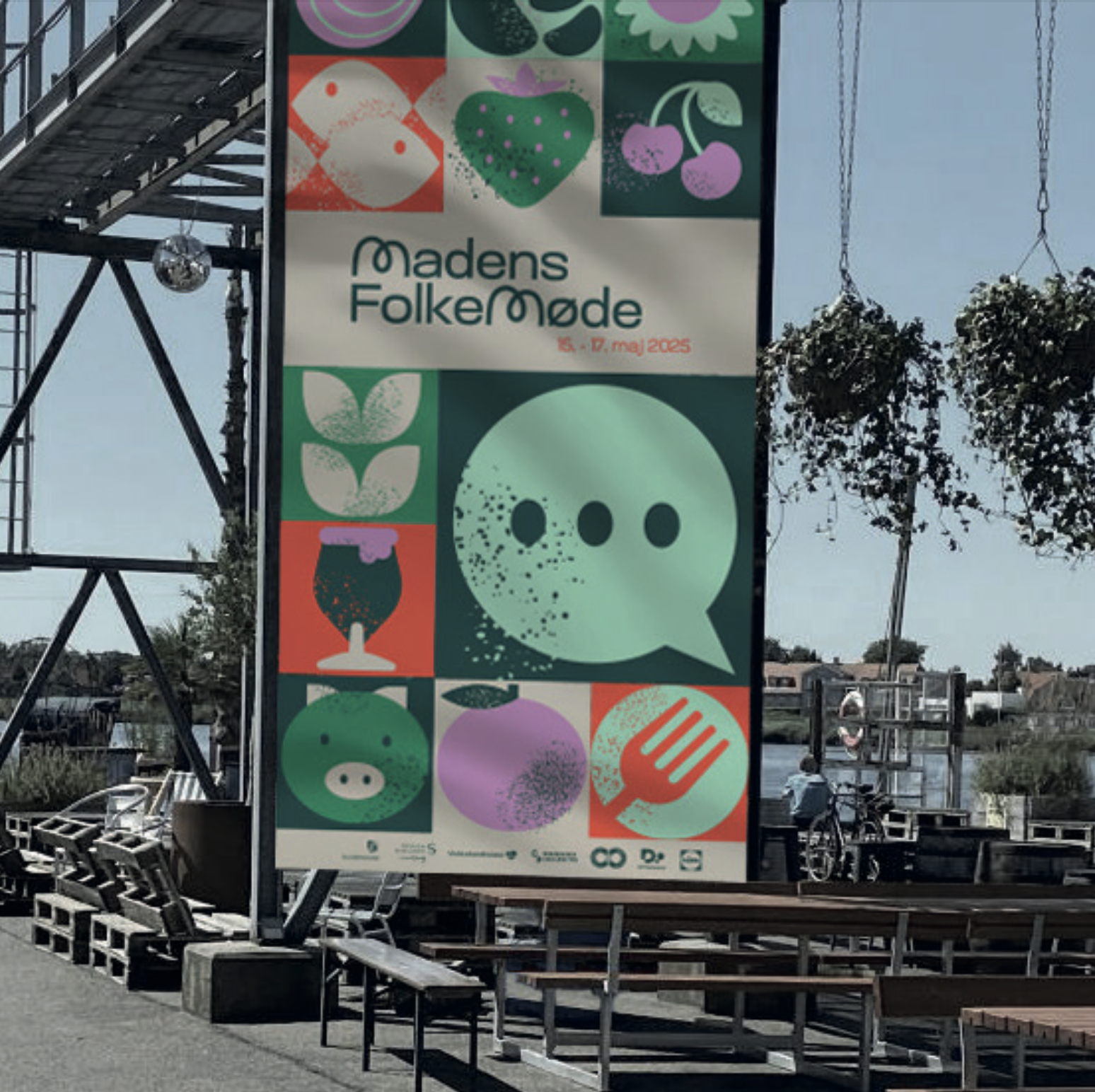 Det kræver en særlig visuel identitet at matche energien og dynamikken i byens rum. Derfor har vi arbejdet på et design, der afspejler de mange elementer i folkemødet og de pladser, vi kommer til at indtage.