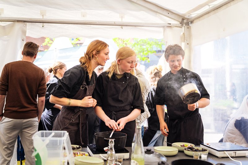 Efter programmet i Markedshallen er der mulighed for at udforske Madens Folkemøde og tage del i fællesskabet omkring maden.